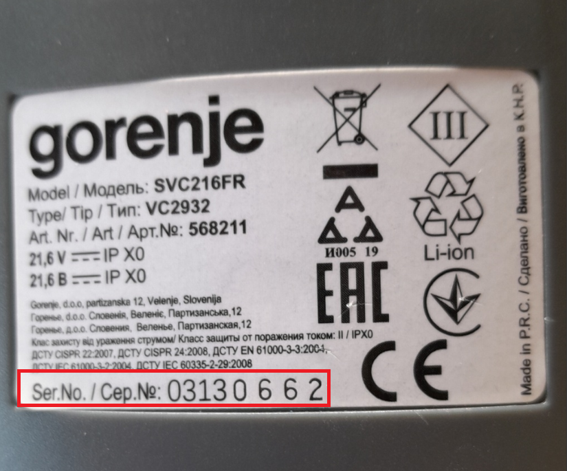 Внимание ! Проверете по Ser.No. на вашата прахосмучка.